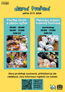 Tento workshop probíhá souběžně s jarním tvořením. Pokud máte zájem o oba semináře, můžete volně přecházet mezi místnostmi (malování kraslic nemá striktně daný začátek).
