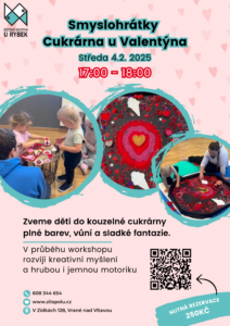 Přijďte si s dětmi užít hravé a tvořivé odpoledne, kde společně objevíme Valentýnskou cukrárnu všemi smysly! Zveme děti do kouzelné cukrárny plné barev, vůní a sladké fantazie. Smyslohrátky na motivy svátku svatého Valentýna nabídnou hravé tvoření, zdobení a objevování světa prostřednictvím všech smyslů. Děti podpoří zrak, hmat, čich, sluch i jemnou motoriku a zažijí radost ze společné hry v láskyplné valentýnské atmosféře.